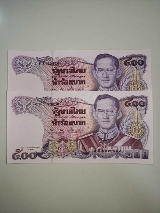 ธนบัตรรักาลที่ 9 ไม่ผ่านการใช้ ฉบับละ 500 บาท รวม 4 ฉบับ ตามรูปเคาะเดียว |