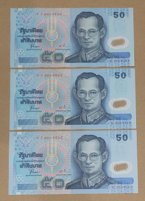 ธนบัตร 50 บาท พอลิเมอร์ 3 ฉบับ เลขเรียง |