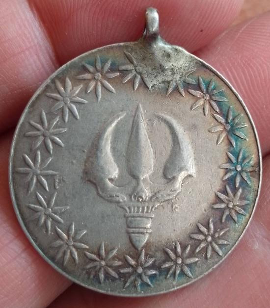 เหรียญรูแข้งสิงห์เนื้อเงิน 10สตางค์ ปี2484 (2เหรียญ) แต่พาไปทำพิธีผ่าครึ่ง เชื่อมเหรียญและเชื่อมห่วง + เหรียญรูทองแดงธรรมดาพร้อมเชือกมีตะกรุด |