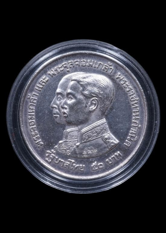 เหรียญที่ระลึกในหลวงรัชกาลที่๙ หลังหลวงพ่อมงคลบพิตร เนื้อเงิน​ พิมพ์​ใหญ่​สร้างในพิธีกาญจนาภิเษก ปี2539​ |