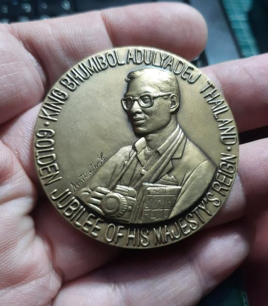 เหรียญที่ระลึกในหลวงรัชกาลที่๙ หลังหลวงพ่อพระนิรันตราย เนื้อเงิน​ พิมพ์​ใหญ่​สร้างในพิธีกาญจนาภิเษก ปี2539​ |