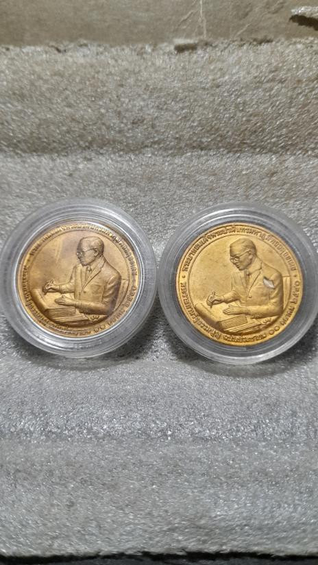 เหรียญที่ระลึกพระบรมราชสมภพ 4 รอบ รัชกาลที่9 เนื้อกะไหล่ทอง ปี2518 |