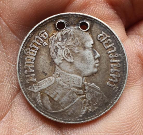 เหรียญเงิน รัชกาลที่ 5 เฟื้องหนึ่ง เนื้อเงินแท้ หลังมีรอยเชื่อม ตามสภาพ (เคาะเดียว) |