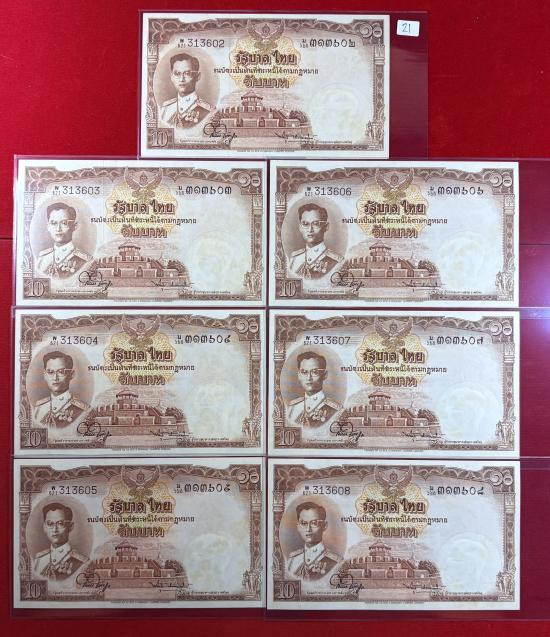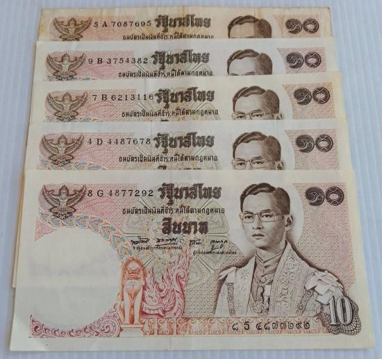 เคาะเดียวแดง.....ธนบัตร แบงค์10 บาทรัชกาลที่9 โทมัสแบบ11 ด้านหลังรูปวัดเบญจมบพิตร จำนวน 5 ใบ |