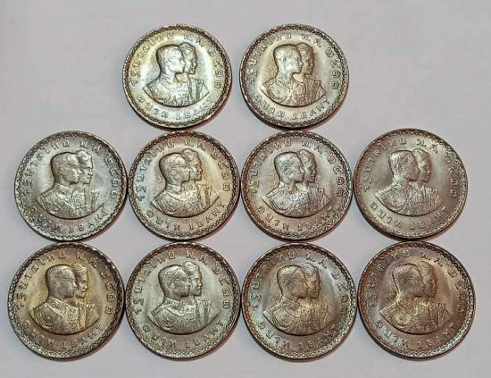 เหรียญ 1 บาท เอเชี่ยนเกมส์ ครั้งที่ 6 ในหลวงคู่ราชินี พ.ศ.2513 ในสมัยรัชกาลที่ 9 สภาพไม่ผ่านใช้แกะแบ่งจากถุง จำนวน 10 เหรียญ ครับ |