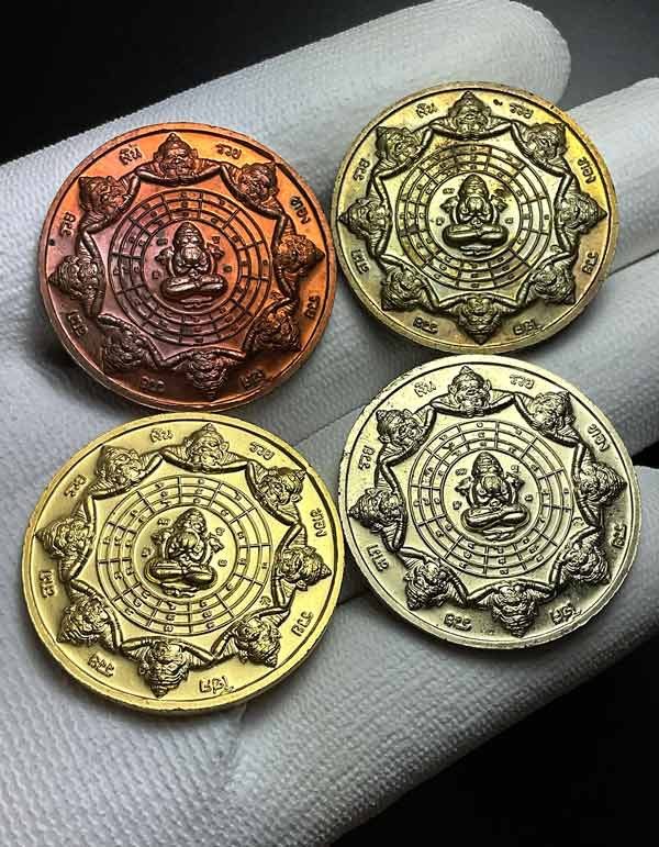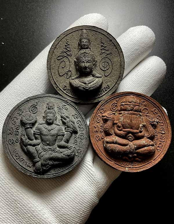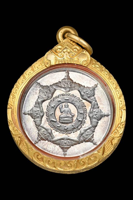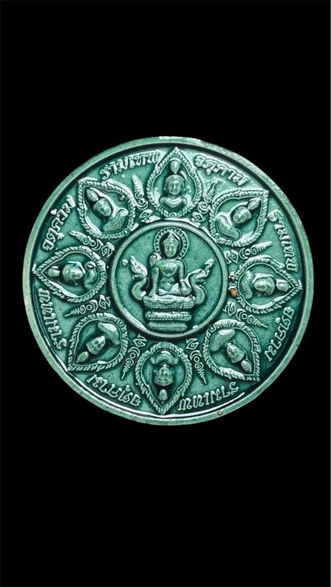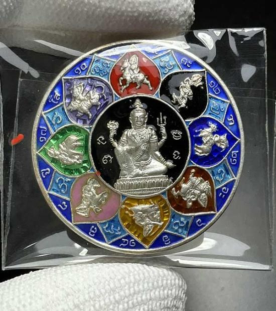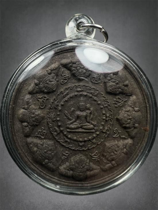 ดวงตราสุริยัน จันทรา ราหูจร รุ่น มั่งมีศรีสุข ปี 2547 สีธรรมชาติผงไม้ตะเคียน หายากครับ พร้อมกล่องเดิม |