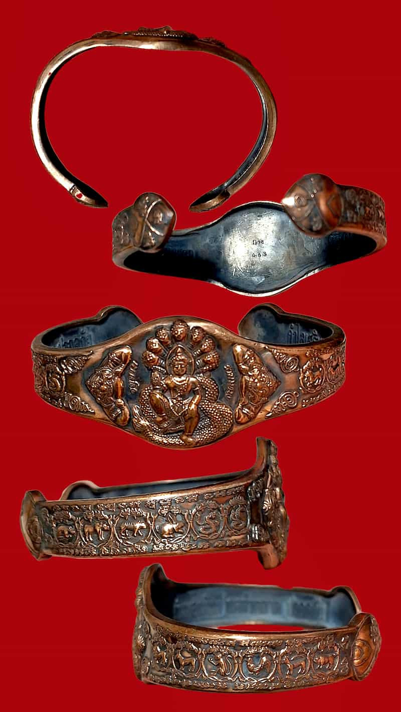 เคาะเดียวแดง กำไล องค์พ่อจตุคาม-รามเทพ รุ่นมงคลจักรวาล เนื้อสำริด เลข 981 |