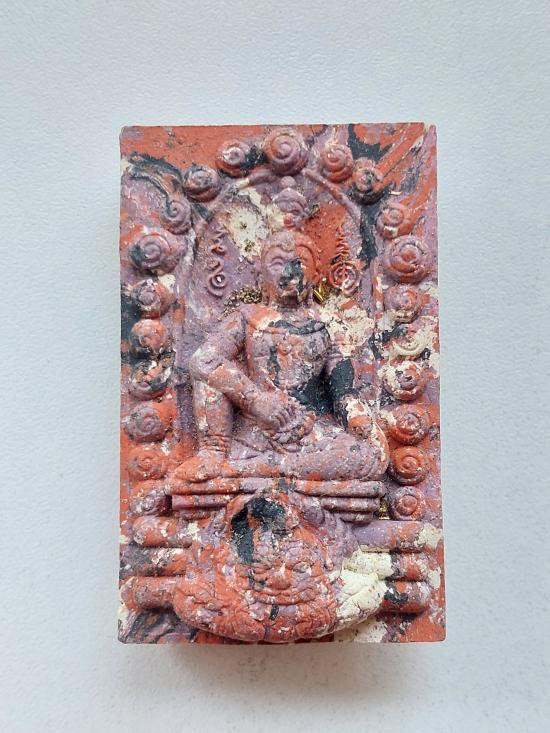 พระพิมพ์ซุ้มโพธิ์ ไตรภาคีศรีนคร โดยท่านขุนพันธ์ ด้านหลังพระพิฆเนศ |