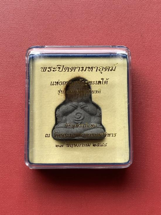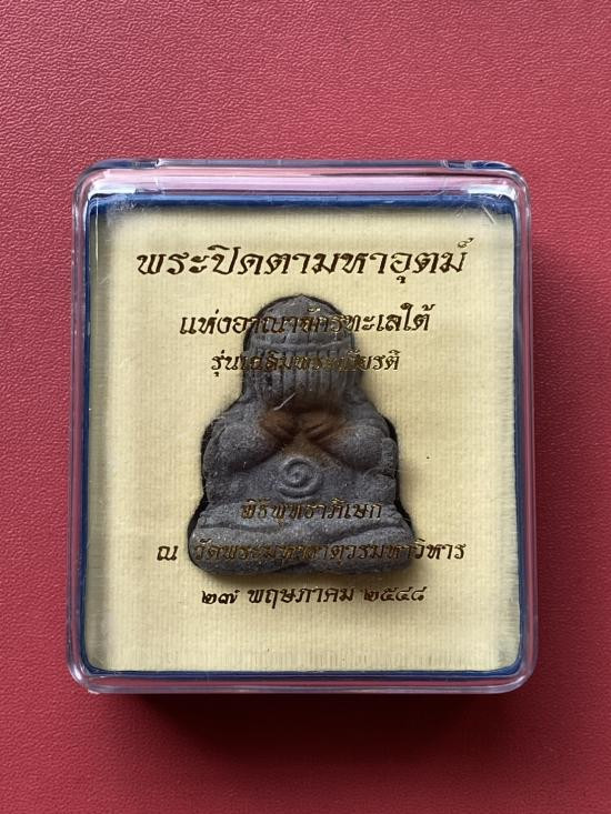 เคาะเดียวแดง ปิดตา มหาอุตม์ อาณาจักรทะเลใต้ รุ่น เฉลิมพระเกียรติ ปี48 เนื้อ ดินผสมใบลาน ตะกรุดเงินคู่ มีโค๊ตและหมายเลข |