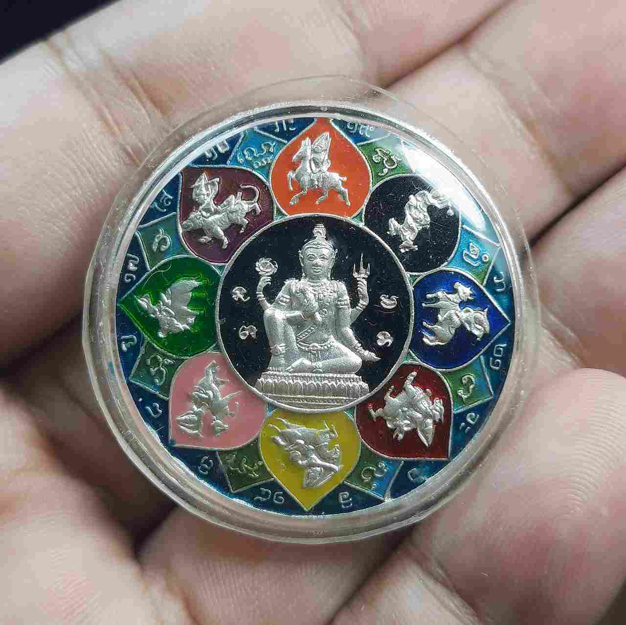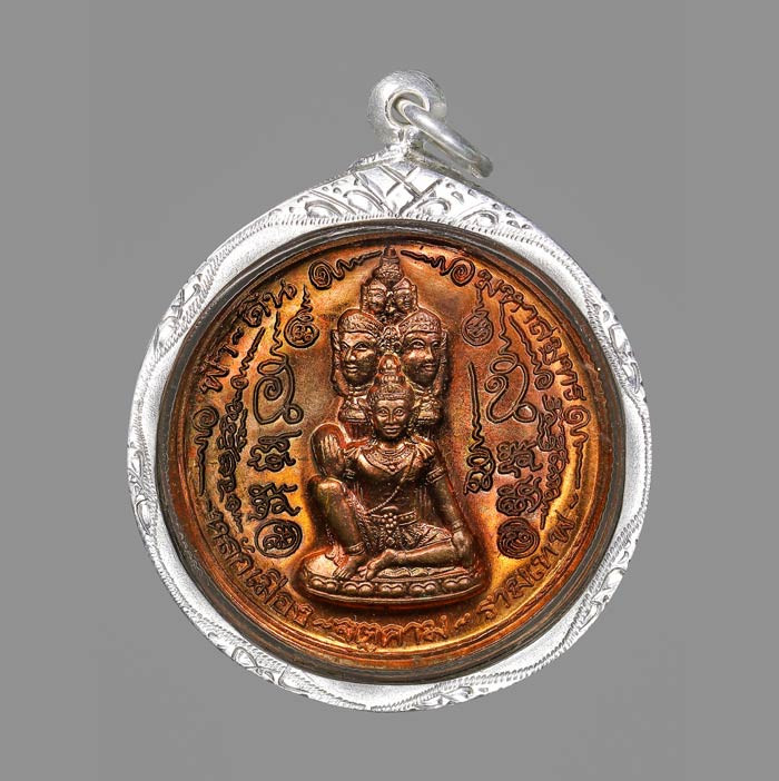(วัดใจเริ่มที่ 500)เหรียญองศ์พ่อจตุคาม-รามเทพ-ท้าวมหาพรหม-พระนารายณ์ เศียรหลักเมือง จ.นครศรีธรรมราช เนื้อทองแดง รุ่นมงคลจักรวาล ปี 2549 มีโค๊ตและหมายเลขกำกับ 3363 ขนาดเหรียญ 3.3 cm พร้อมเลี่ยมกรอบเงิน |