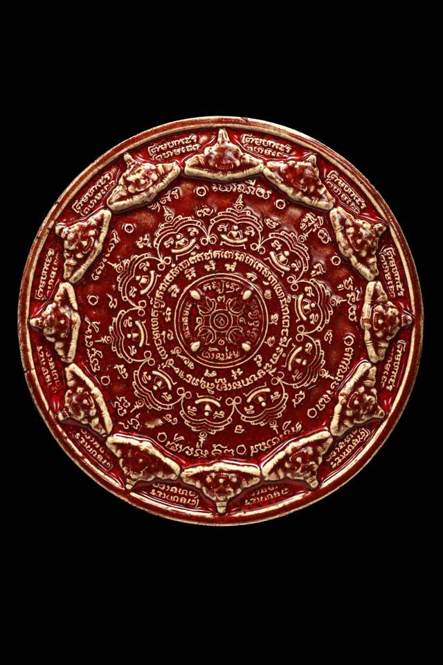 ***ปฐมอรหันต์สุวรรณภูมิ ปี 2547 พิมพ์ธรรมจักร เนื้อดินเผาเคลือบสีแดง ขนาด 5 ซม.พร้อมกล่องเดิม*** |