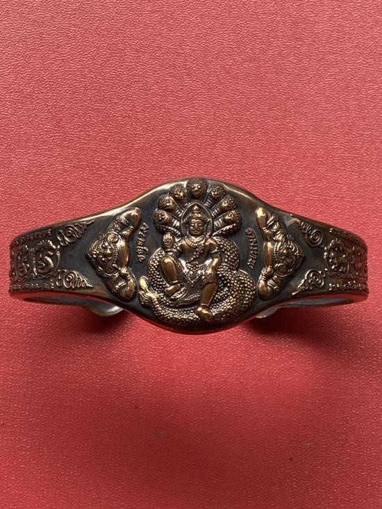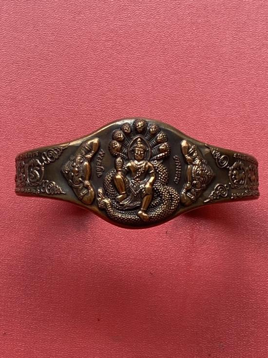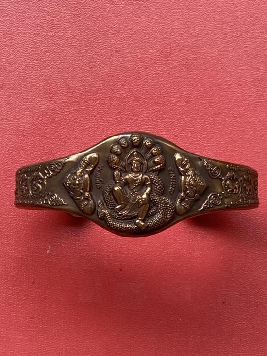 เคาะเดียวแดง กำไล องค์พ่อจตุคาม-รามเทพ รุ่นมงคลจักรวาล เนื้อสำริด เลข 596 |