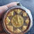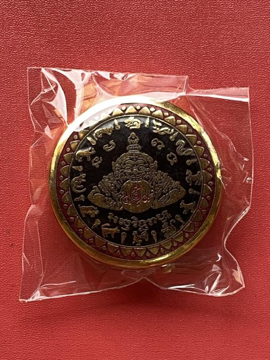 เคาะเดียวแดง สีผึ้งพระราหู รุ่น มงคลจักรวาล เนื้อ โลหะชุบทองลงยาสีดำขอบสีดำ ขนาด5ซม |