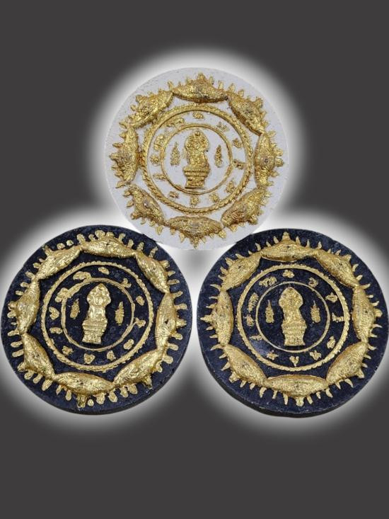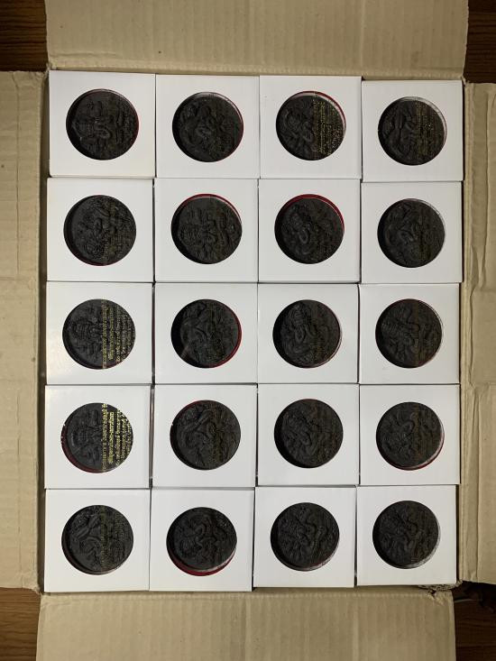 องค์พ่อจตุคาม หลวงปู่ศุข กรมหลวงชุมพร รุ่น ศุข อภิมหาเศรษฐี เนื้อกระเบื้องเคลือบ ลายน้ำทอง ขนาด 5 ซม และ 3 ซม.กล่องเดิม
