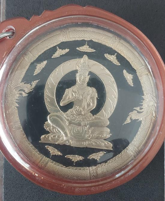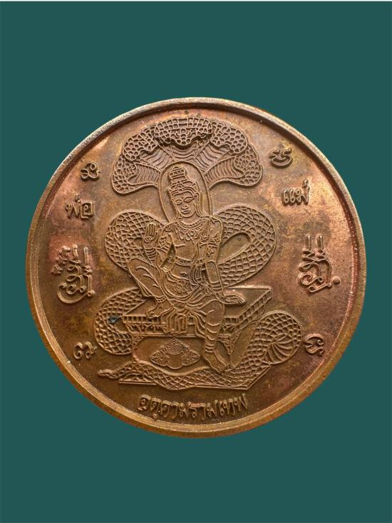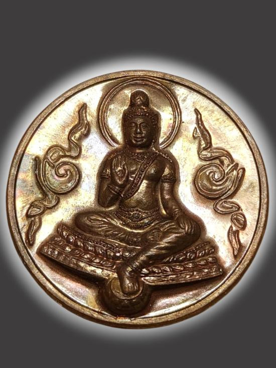 เหรียญพระโพธิสัตว์พังพกาฬ ดวงดี วัดพระมหาธาตุวรวิหาร จ.นครศรีธรรมราช เนื้อทองเหลืองรุ้งลงยาธงชาติ หมายเลข ๙๓