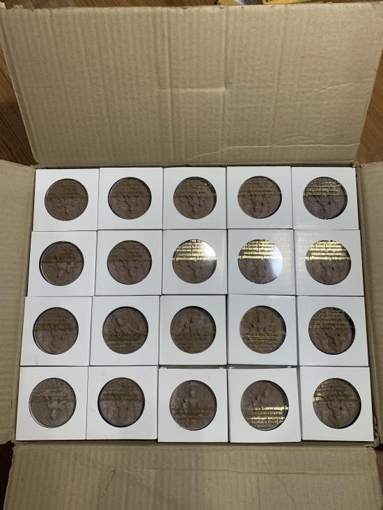 เหรียญจตุคาม รามเทพ เนื้อทองแดงกะไหล่ทองลงยาน้ำเงิน รุ่นหลักเมืองมหามงคล 50 ขนาด 3.2 ซม. พร้อมกล่องเดิม