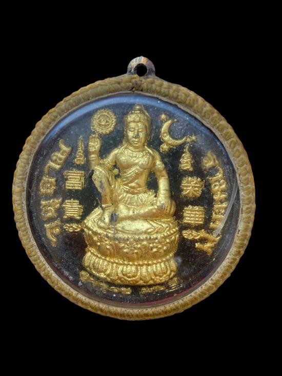 139.... รุ่น "บารมีศรีวิชัย" เนื้อผงว่าน ลายเสือ หน้ากากชุบทอง 5.5 ซม. กรรมการ สวยเดิมกล่องเดิม