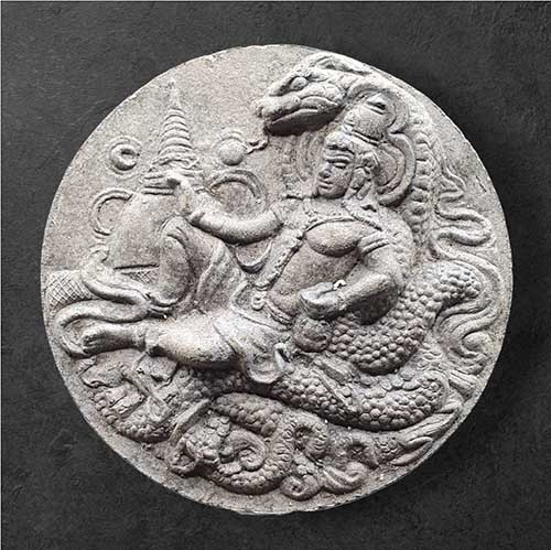พระเทวราชโพธิสัตว์จตุคามรามเทพ - พระพิฆเณศวรเทพเจ้าแห่งความสำเร็จ เนื้อว่านแดงปัดทอง รุ่น อภิมหาสมบัติวัดโคกเนียน จังหวัดพัทลุง วิทยาลัยช่างศิลป์นครศรีธรรมราช สร้างปี 2550 |