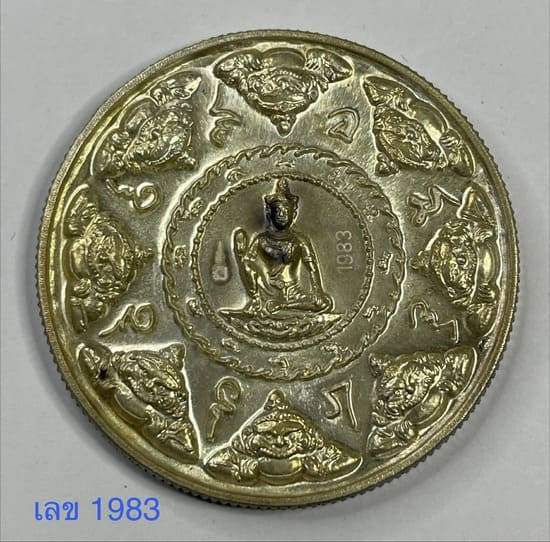 วัดพุทไธศวรรย์ ล็อกเก็ตนายพลเหนือดวง หมายเลข 107 สร้างปี 2550 หุ้มด้วยแผ่นโลหะเงิน อุดผงพรายกุมาร ฝังพระปรกใบมะขาม |
