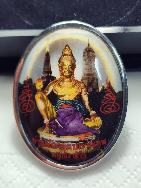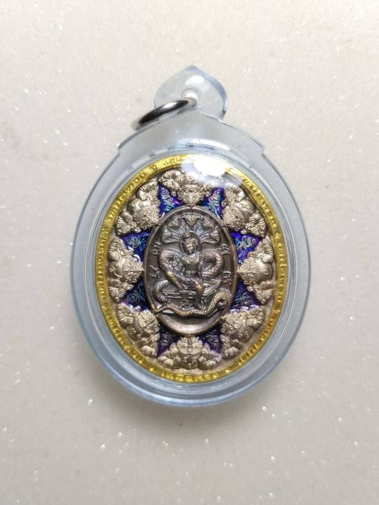 วัดพุทไธศวรรย์ ล็อกเก็ตนายพลเหนือดวง หมายเลข 171 สร้างปี 2550 หุ้มด้วยแผ่นโลหะเงิน อุดผงพรายกุมาร ฝังพระปรกใบมะขาม |