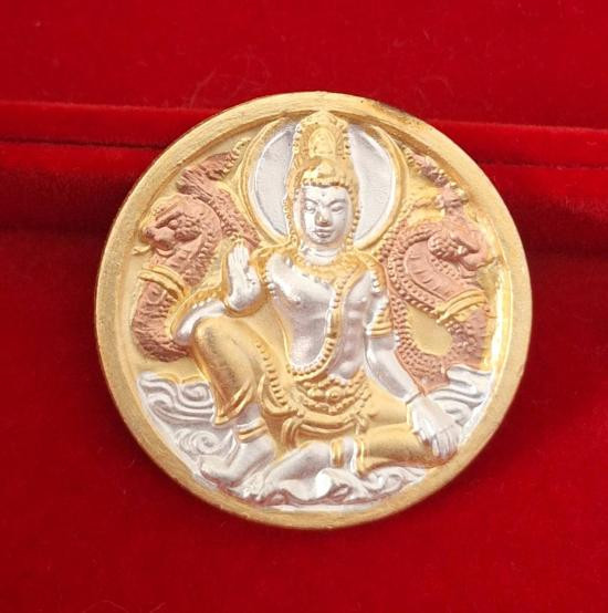 199.......เหรียญบาตรน้ำมนต์ รุ่นราชาทรัพย์ เนื้อ 3 กษัตริย์ (ทอง เงิน นาก ) 5.5 ซม. สวยเดิมๆ กล่องเดิม |