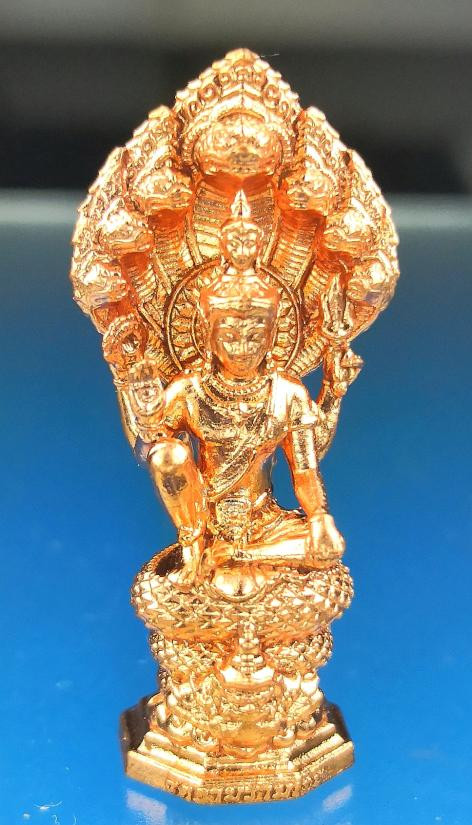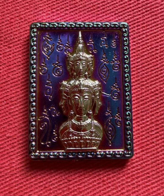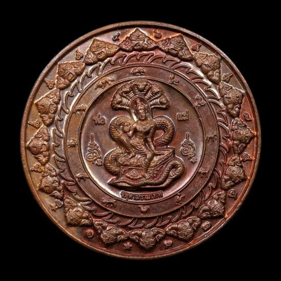เหรียญพระโพธิสัตว์พังพกาฬ ดวงดี วัดพระมหาธาตุวรวิหาร จ.นครศรีธรรมราช เนื้อทองแดงผิวรุ้งลงยาน้ำเงิน หมายเลข ๑๐๕ |