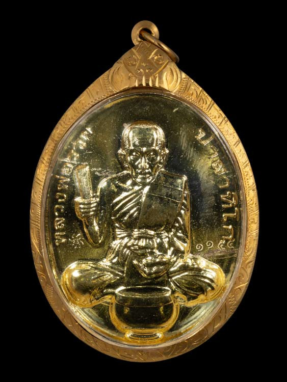 เหรียญนั่งพาน หลวงพ่อหยอด วัดแก้วเจริญ รุ่นสมปรารถนาเฮง