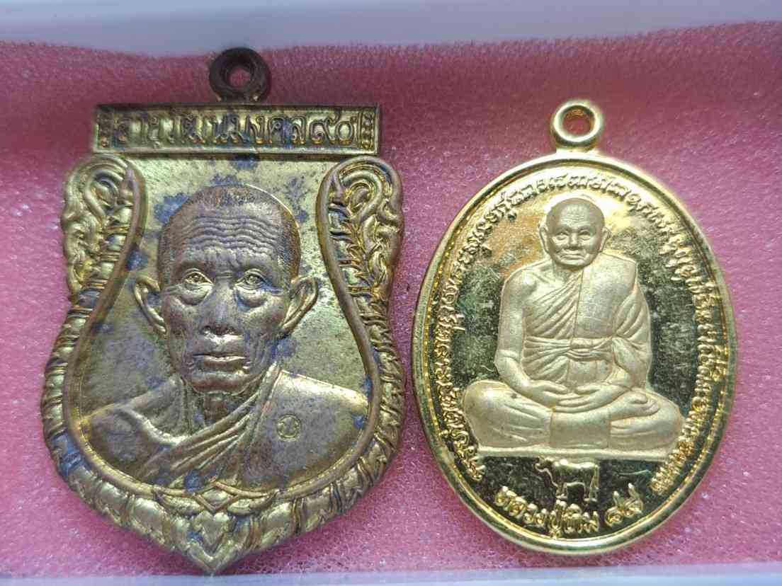 เหรียญ2อาจารย์ หลวงปู่ทวด-หลวงปู่ดู่ รุ่นเจ้าสัวพันล้าน (บอย ท่าพระจันทร์) เนื้อสองกษัตริย์ โค๊ตเลข ๒๔๑๐ พร้อมกล่องเดิม