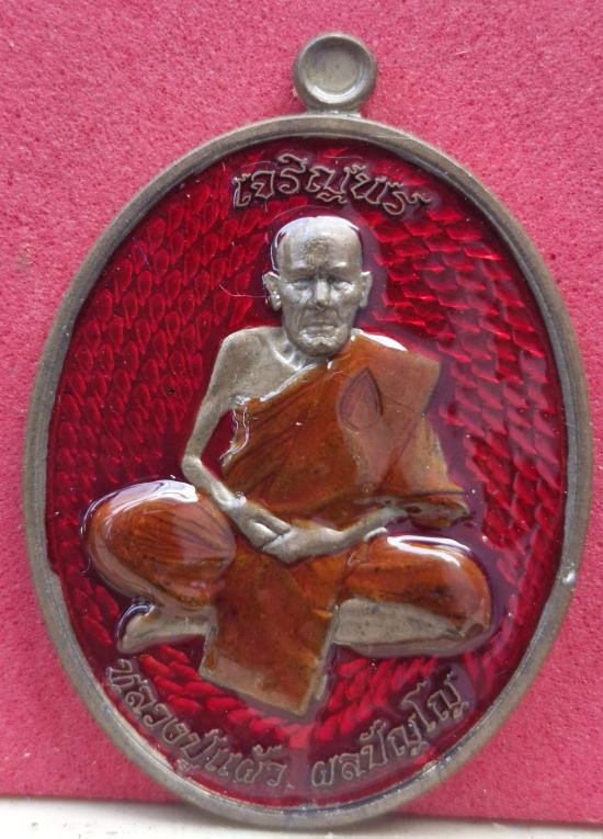 เคาะเดียวแดง เหรียญหลวงปู่แผ้ว สำนักปฏิบัติธรรมบ้านใสหลวง รุ่นเจริญพร เนื้อสัตตะลงยา