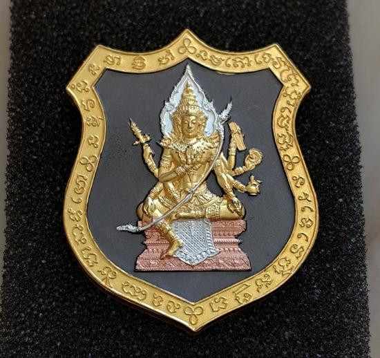 เหรียญท้าวมหาพรหม รุ่นเจ้าสัวพันล้าน(บอย ท่าพระจันทร์) เนื้อตะกั่วผสมชนวนฝังแผ่นทองเสก เลขโค๊ต ๑๐๓๘ พร้อมกล่องเดิม