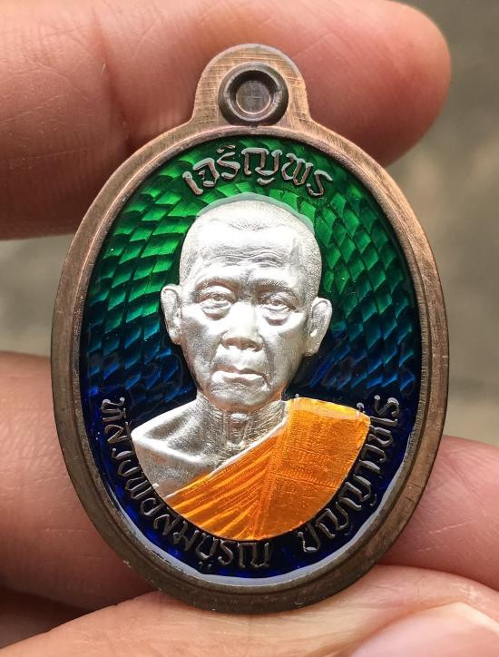 เหรียญหลังโต๊ะหมู่ "เนื้อเงินลงยา" ล.พ.จรัญ วัดอัมพวัน สิงห์บุรี หมายเลข#๙๓