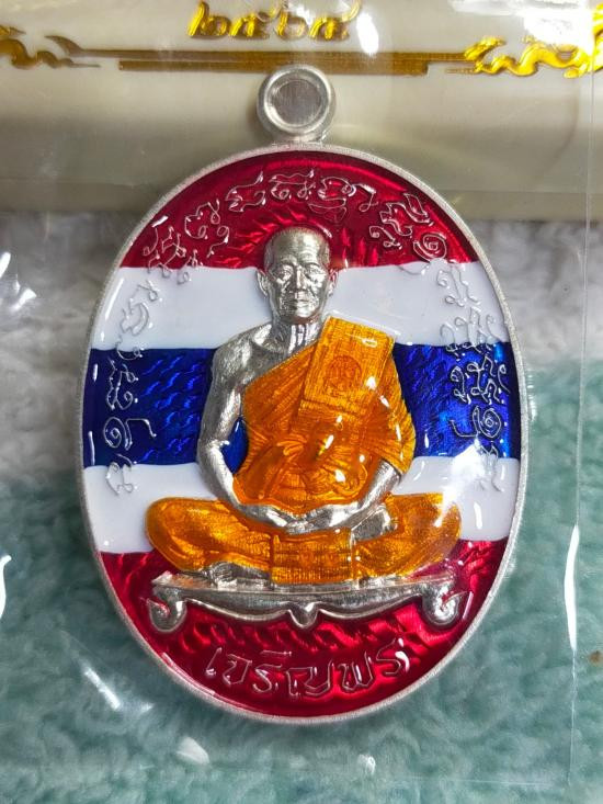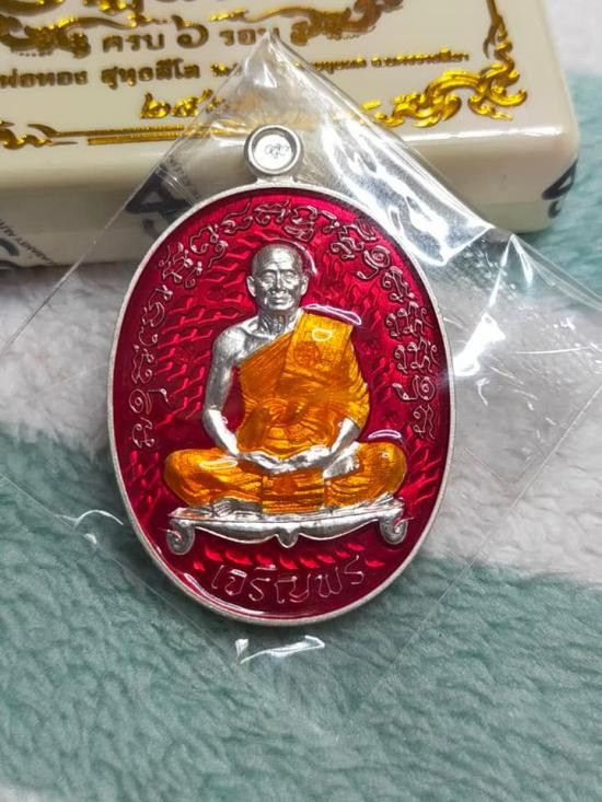 หลวงปู่แผ้ว ปวโร วัดรางหมัน นครปฐมเหรียญเม็ดแตงแซยิด ปี53 เนื้อเงินลงยาแดง สร้าง29 เหรียญ |