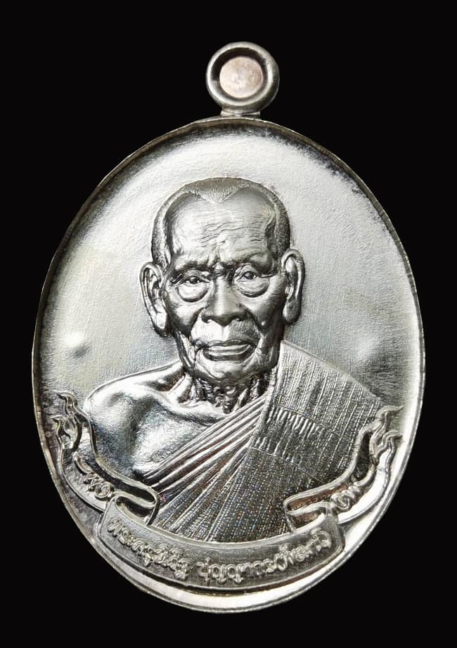 หลวงพ่อรวย รุ่นเหรียญเลื่อนสมณศักดิ์ ปี 2559 เนื้ออัลปาก้า เลี่ยม พุก เงาๆ สวยๆ |