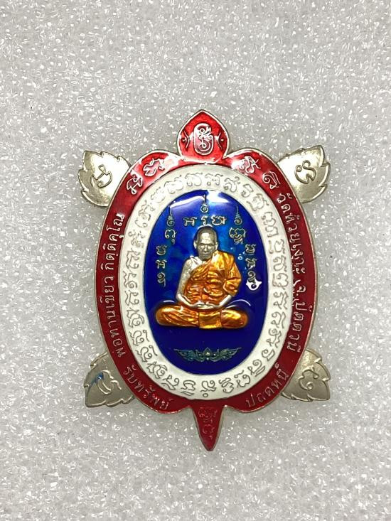 เหรียญหลวงพ่อรวย วัดตะโก รุ่นไตรมาส 59 รวยรวยรวย เนื้อทองแดงลงยา ปี 2559 จ.พระนครศรีอยุธยา เลี่ยมทองคำแท้ |