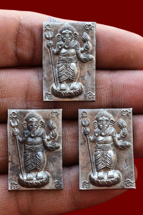 เหรียญพระพิฆเณศ เนื้อตะกั่ว ด้านหลังจารยันต์ ปี 2552 หลวงปู่น้อย วัดบ่อหลวง จ.เพชรบุรี พร้อมซองใบฝอยจากวัด |