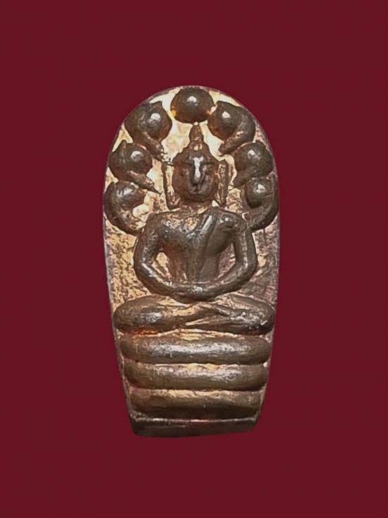 พระนาคปรก พระครูบาศักดิ์ จ.ลำปาง เนื้ออัลปาก้าซาติน ลงยาเหลือง |