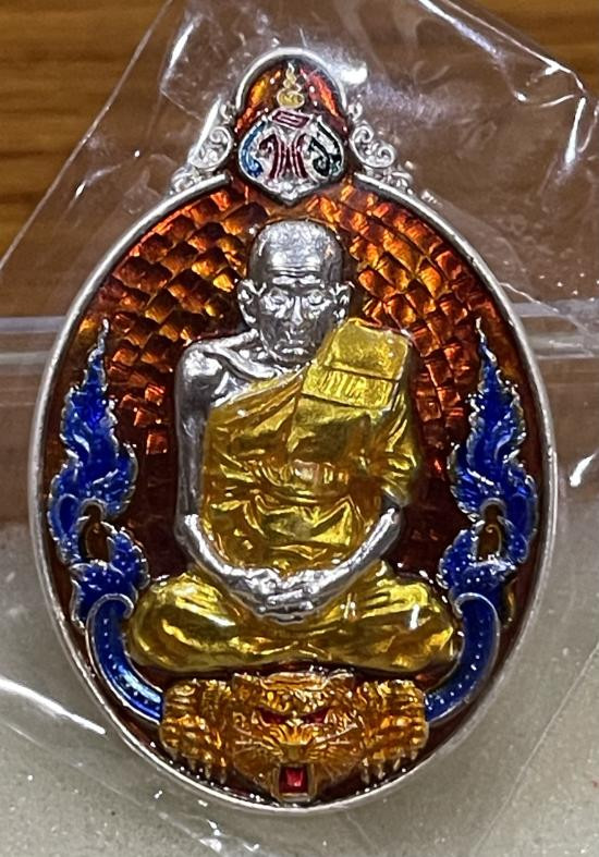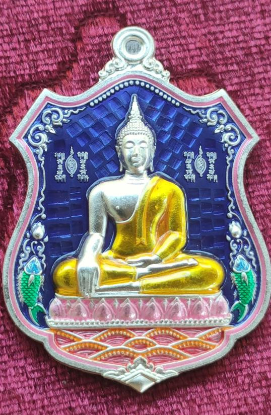 เหรียญหลวงพ่อโต รุ่น"เจริญยศ"ประวัติศาสตร์ตำรวจ๒๕๖๘ วัดบางพลีใหญ่ใน จ.สมุทรปราการ พิมพ์เหรียญอาร์ม เนื้อชุบเงิน คุ้ยพื้นลงยาน้ำเงิน(ทรงเครื่อง) หลังตราโล่ห์ลงยาดำ หมายเลข ๑๕ พร้อมกล่อง ...ยังกะเนื้อเง |