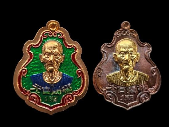 เหรียญเจริญพร รุ่นแรก หลวงปู่สวน วัดวังทรายพูน เนื้อชนวน ลงยาเขียว ลงยาจีวร สภาพสวย พร้อมกล่องเดิมครับ |