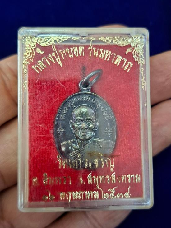 หลวงปู่หยอด วัดแก้วเจริญ รุ่น มหาลาภ ปี 34 เนื้อเงิน สวยๆ กล่องเดิม น้ำหนัก 7.42 กรัม |
