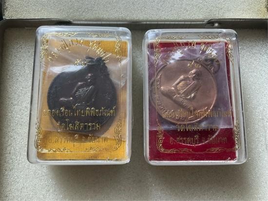 เคาะแรกแดง..เหรียญหลวงพ่อสำเร็จศักดิ์สิทธิ์ รุ่นเจ้าสัว ๒๕๖๔...เนื้อชนวน รวม ๒ เหรียญ กล่องเดิม...ลงยาเหลือง หมายเลข ๓๕๒ + ผิวรุ้งลงยาฟ้า หมายเลข ๒๓๔๑... ลพ.สุนทร วัดหนองสะเดา จ.สระบุุรี |