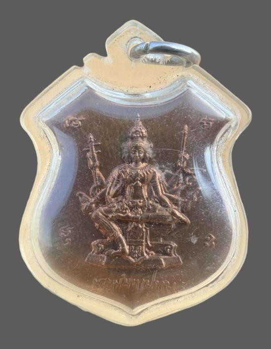เหรียญพระพรหมสี่หน้า เสาร์ห้า หลวงพ่อชำนาญ รุ่นแรก เนื้อทองแดงลงยา 3 เหรียญ 3 สีปี2560 ตอกโคัดและหมายเลช197+บัตรจี |