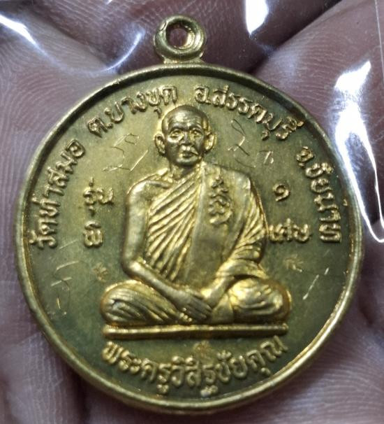 เหรียญหลวงพ่อพรหม วัดขนอนเหนือ รุ่นพิเศษหลังยันต์ตัวเฑาะว์ พิมพ์เล็ก กะไหล่ทองสร้างปี พ.ศ.2527 |