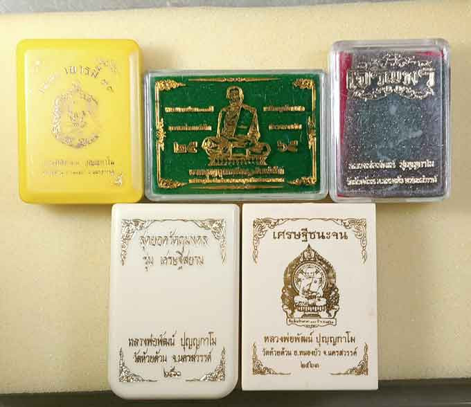 วัดใจ เคาะเดียว 5 องค์ พระปรกใบมะขามรุ่นแรก หลวงปู่โส กัสฺสโป วัดป่าคำแคนเหนือ จ.ขอ นแก่น ปี2538 เนื้อทองแดง |