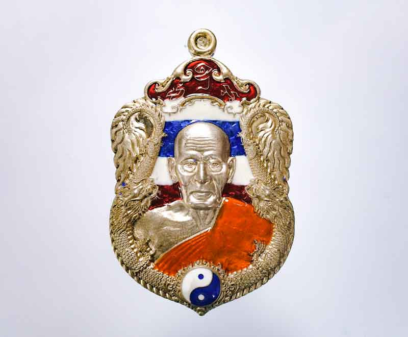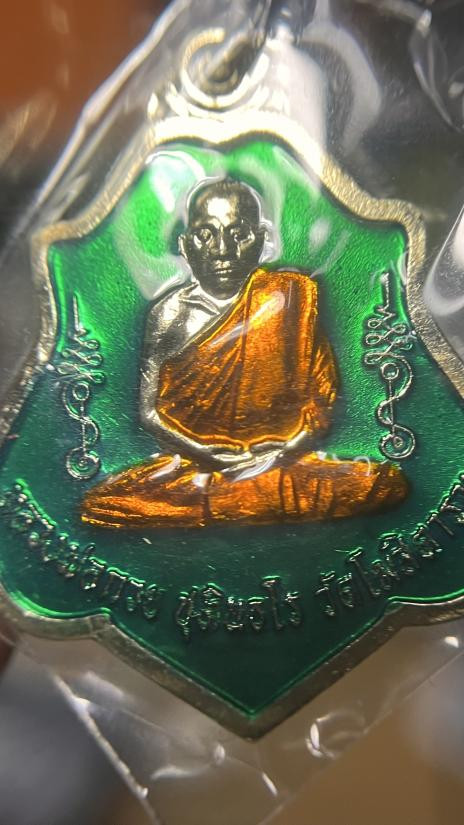 เหรียญเซียนแปะ มงคล108 วัดศาลเจ้า เนื้อเงินลงยา กรอบเงินลงยา จัดสร้างโดย อั๋น โอกิ |