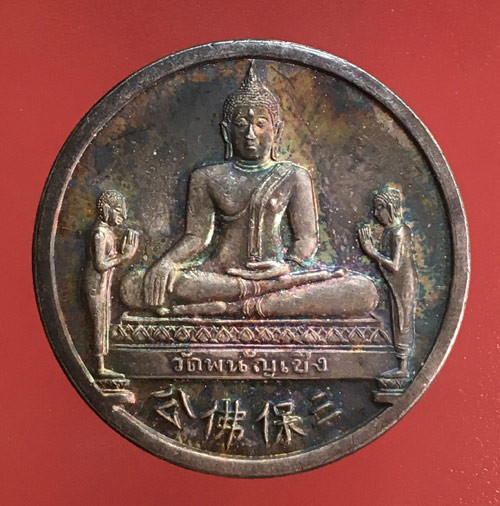 เหรียญนั่งพาน ที่ระลึกสร้างกำแพง หลวงพ่อชาญ วัดบางบ่อ จ.สมุทรปราการ ปี 2559 เนื้อเงิน โค๊ตหมายเลข 10 พร้อมกล่องกำมะหยี่ สภาพสวยเดิมๆครับ |