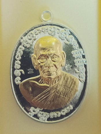 หลวงพ่อรวย รุ่นรวย99 เนื้อเงินพ่นทราย พร้อมกล่อง |