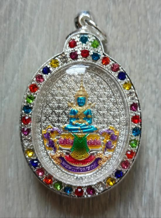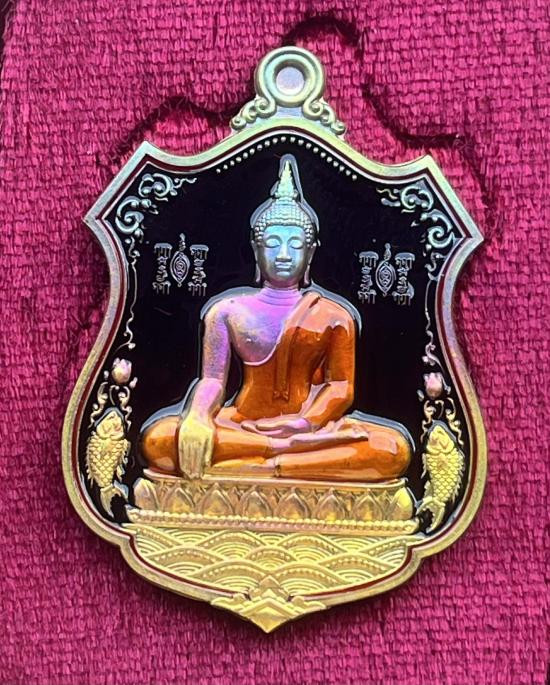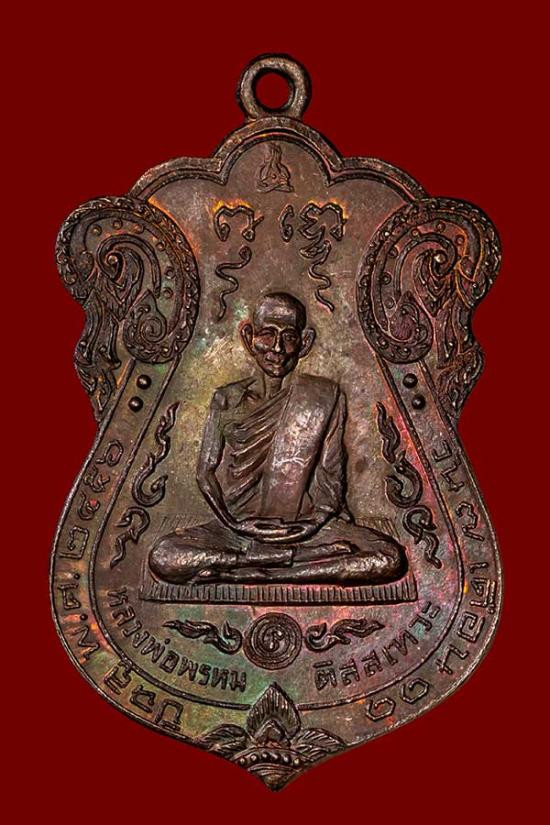 วัดใจเคาะเดียงแดง เหรียญท้าวมหาพรหม เจ้าสัวพันล้าน บอยท่าพระจันทร์ เนื้อทองแดงผิวรุ้ง ลงยาขาว ขอบแดง เลข 1866 |