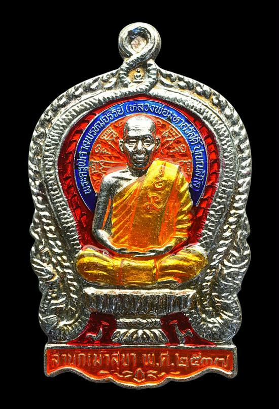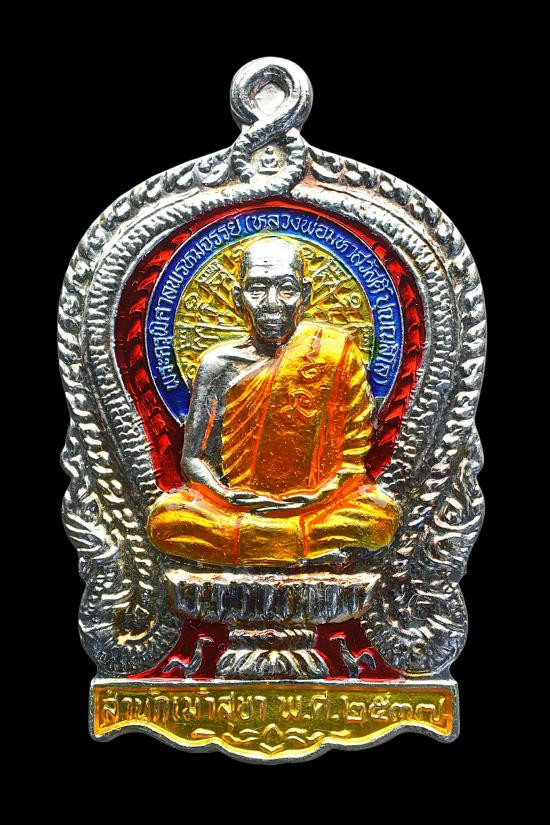เหรียญอายุยืน หลวงพ่อหวล วัดพุทไธศวรรย์ จ.พระนครศรีอยุธยา 7 รอบ เนื้อเงินลงยา สภาพสวยเดิมพร้อมกล่องเดิม หมายเลข 71 |