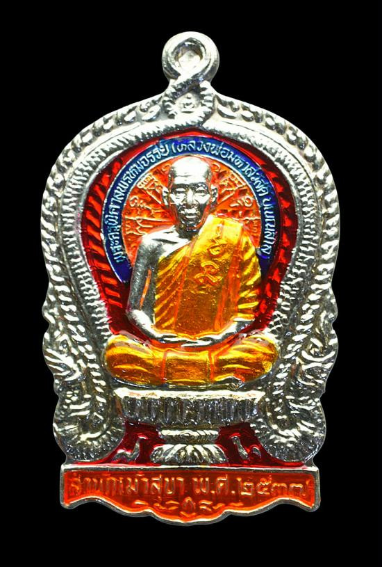 หลวงพ่อพัฒน์ ปุญฺญกาโม วัดห้วยด้วน นครสวรรค์ เหรียญ ราชาพยัคฆ์ เนื้ออัลปาก้า ลงยา 2 สี พื้นแดง ขอบแดง ลงยาจีวร (รายการที่ 6) |