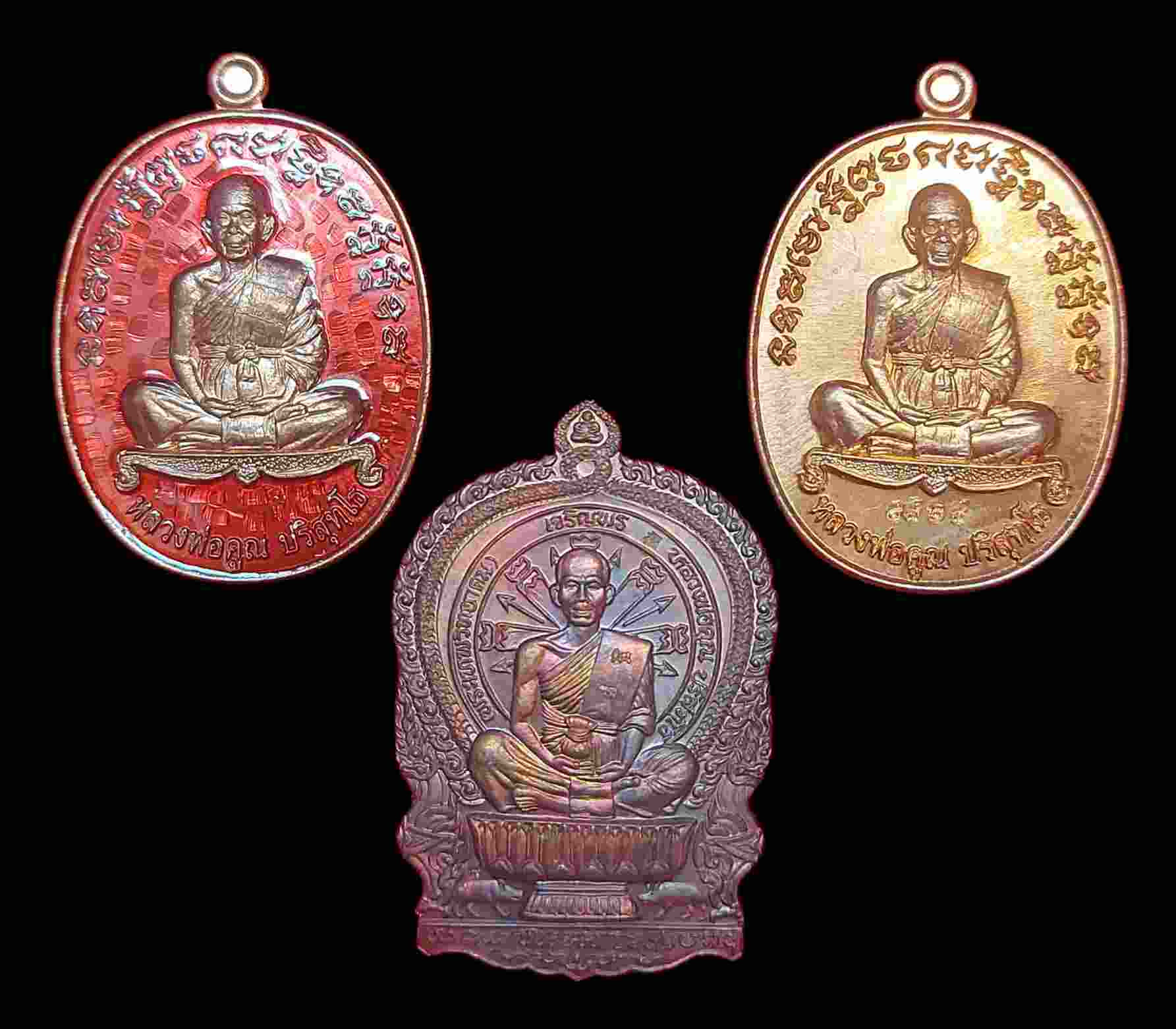วัดใจเคาะเดียวแดง พระเหรียญชุดหลวงพ่อคูณ วัดบ้านไร่ จำนวน 3 เหรียญพร้อมกล่อง |